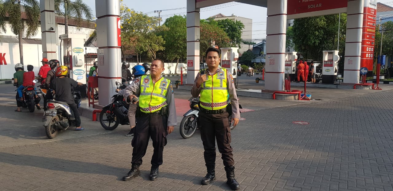 Salah satunya yang dilakukan personil Unit Sabhara Polsek Semampir di SPBU Jalan Danakarya, Minggu sore, 18 Nopember 2018.