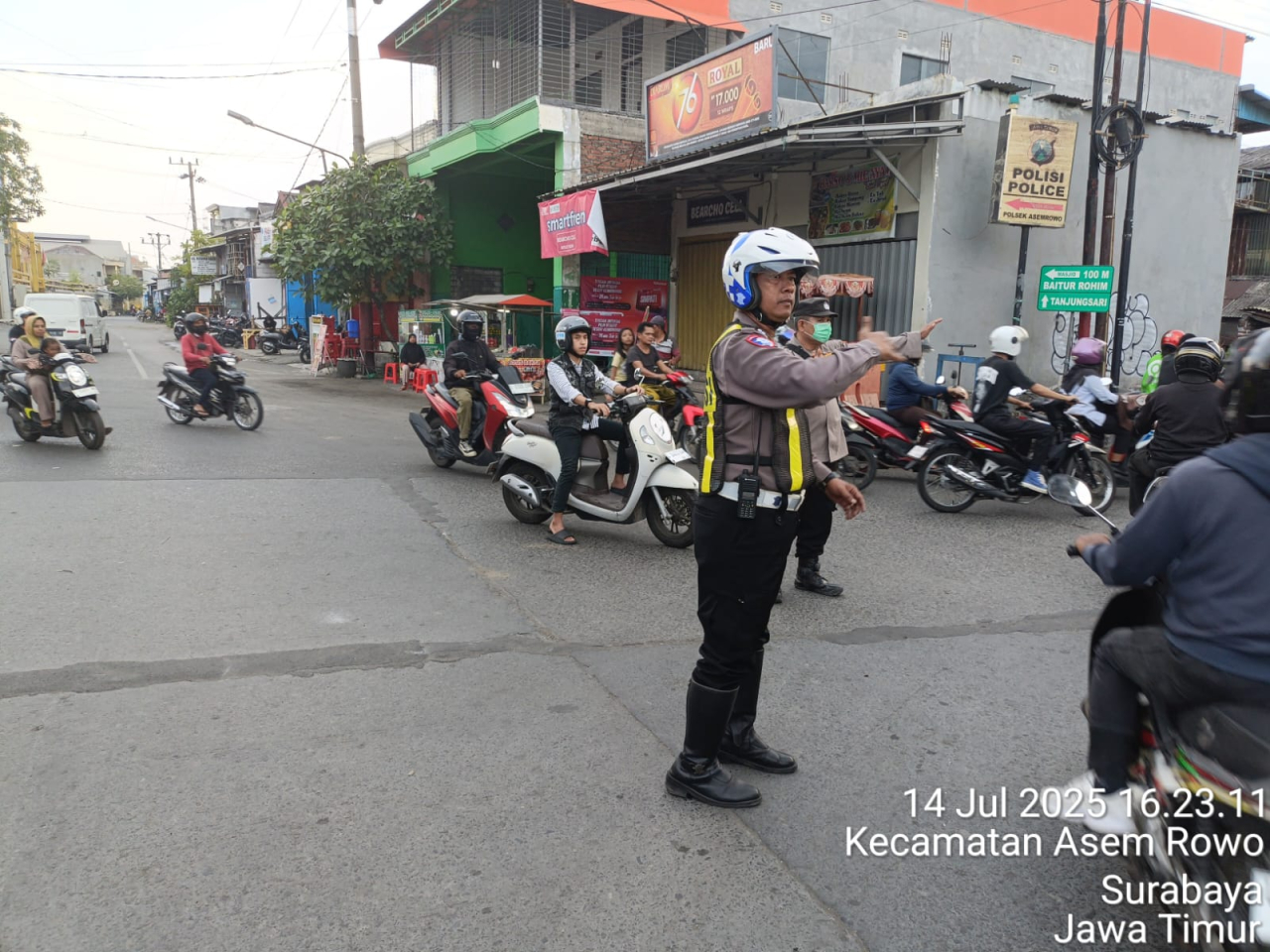 Seputarperak.com – Pada hari Senin, 14 Juli 2025, personel Polsek Asemrowo bersama piket fungsi lalu lintas dan piket Sabhara melaksanakan kegiatan pos akhir di sekitar perlintasan kereta api Jalan Tambak Mayor, Surabaya. Kegiatan ini dilakukan untuk memastikan kelancaran arus lalu lintas di titik yang kerap mengalami peningkatan volume kendaraan, terutama pada jam-jam sibuk.