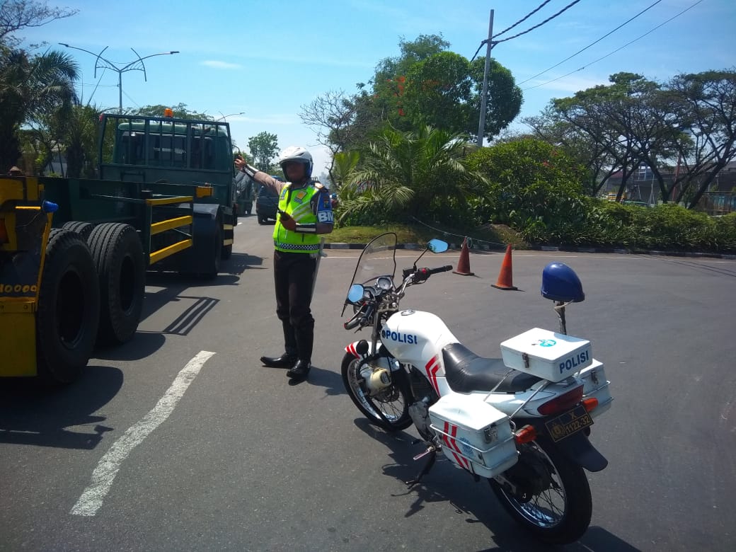 Selain pengalihan arus lalu lintas di Injaplas, personil Satlantas juga melakukan pengaturan persis di depan PT Sungai Budi. (hum)