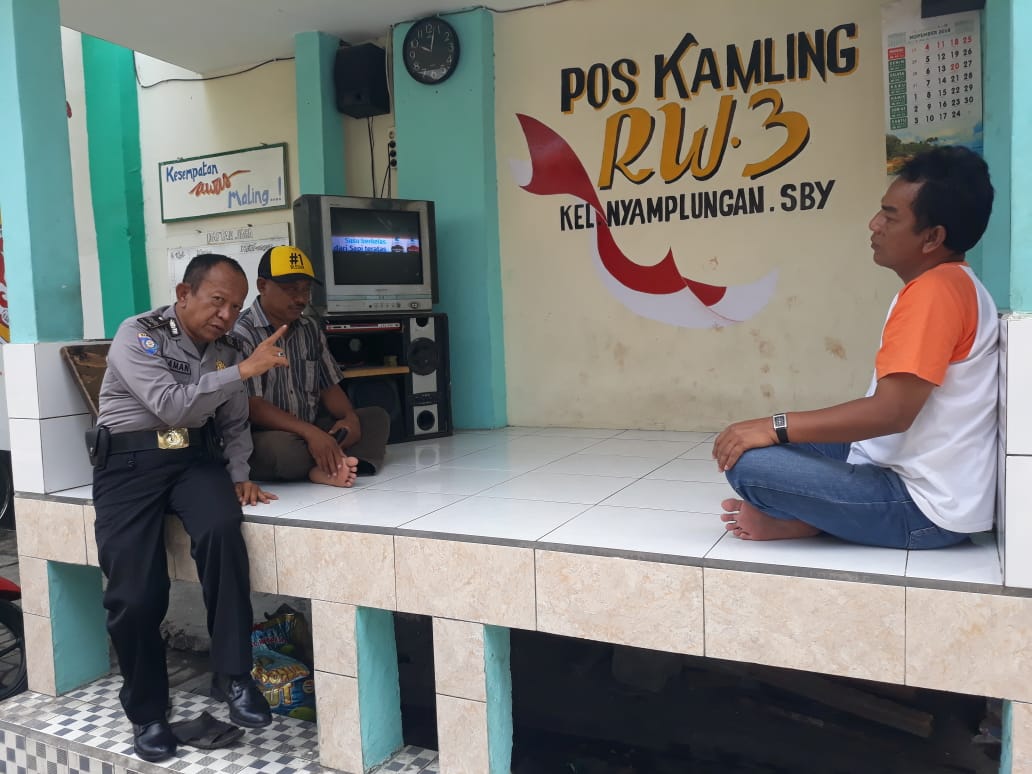Seputarperak.com- Himbauan keselamatan disampaikan Aiptu Buaman kepada penarik becak yang tengah nongkrong di pos kamling RW 03 Jalan KH Mas Mansyur Kelurahan Nyamplungan, Kamis, 29 Nopember 2018.