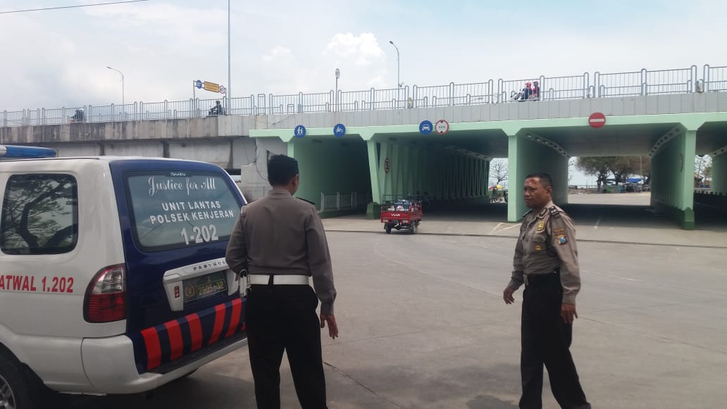 Seputarperak.com- Patroli rutin dilakukan personil Unit Lantas dan Unit Sabhara Polsek Kenjeran, Polres pelabuhan Tanjung Perak di seputaran terowongan Jembatan Suramadu, Sabtu siang, 1 Desember 2018.