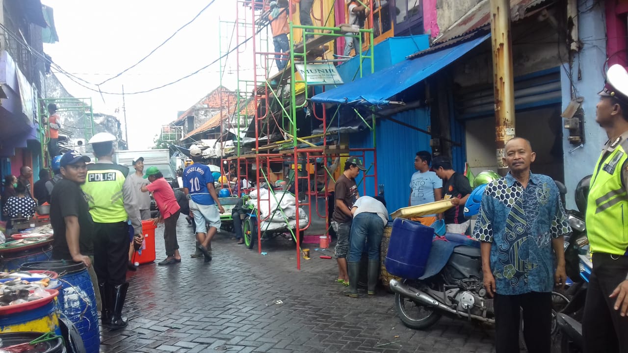 Seputarperak.com- Pengaturan lalu lintas sore dilakukan Polsek Pabean Cantikan, Polres Pelabuhan Tanjung Perak di seputaran Pasar Ikan, Jalan Panggung, Rabu, 5 Desember 2018.