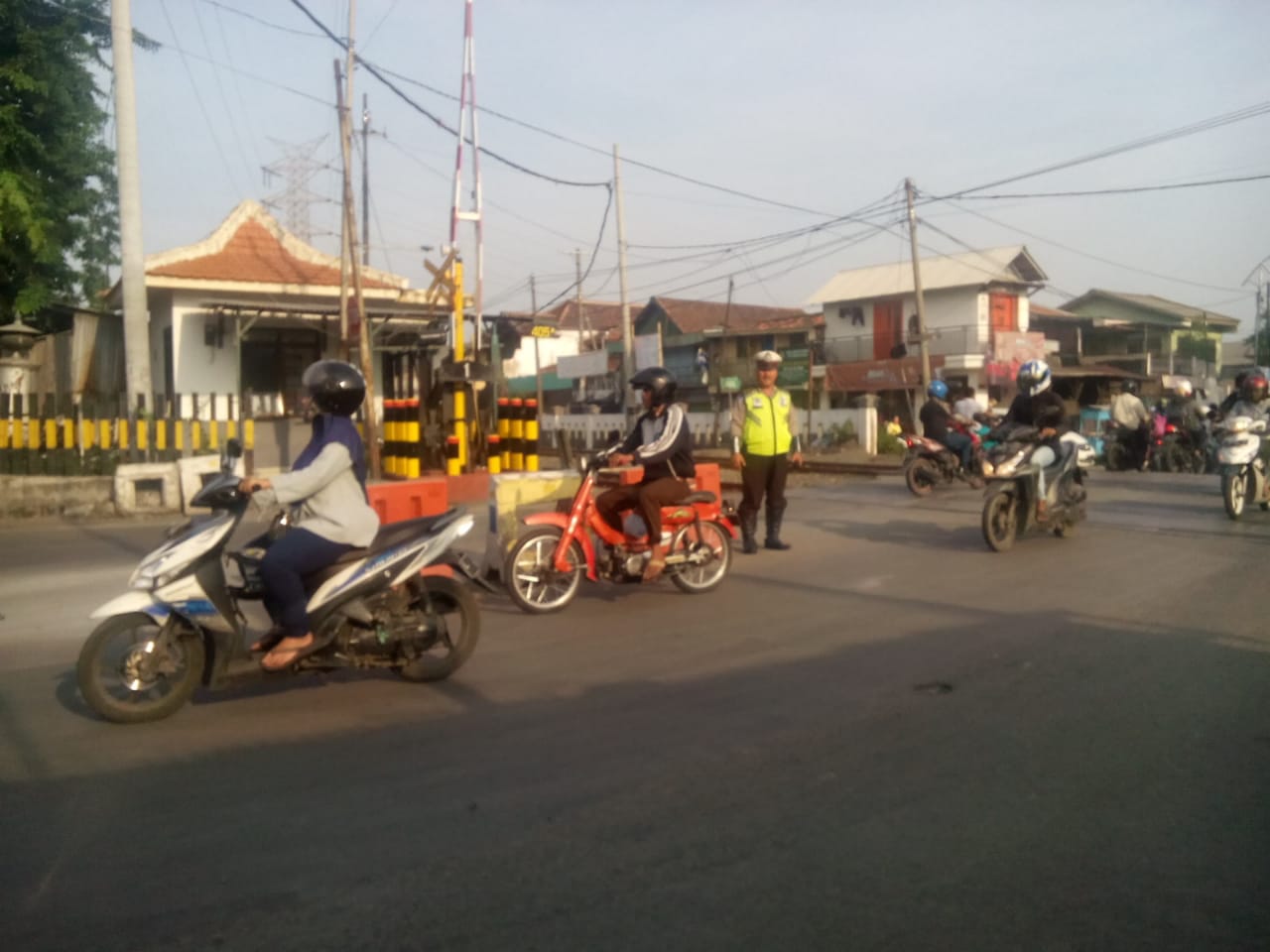 Seputarperak.com- Pengaturan lalu lintas pagi dilaksanakan personil Polsek Asemrowo, Polres Pelabuhan Tanjung Perak di seputaran Jalan Tambak Mayor, tepatnya di sekitar rel kereta api, Jumat, 7 Desember 2018.