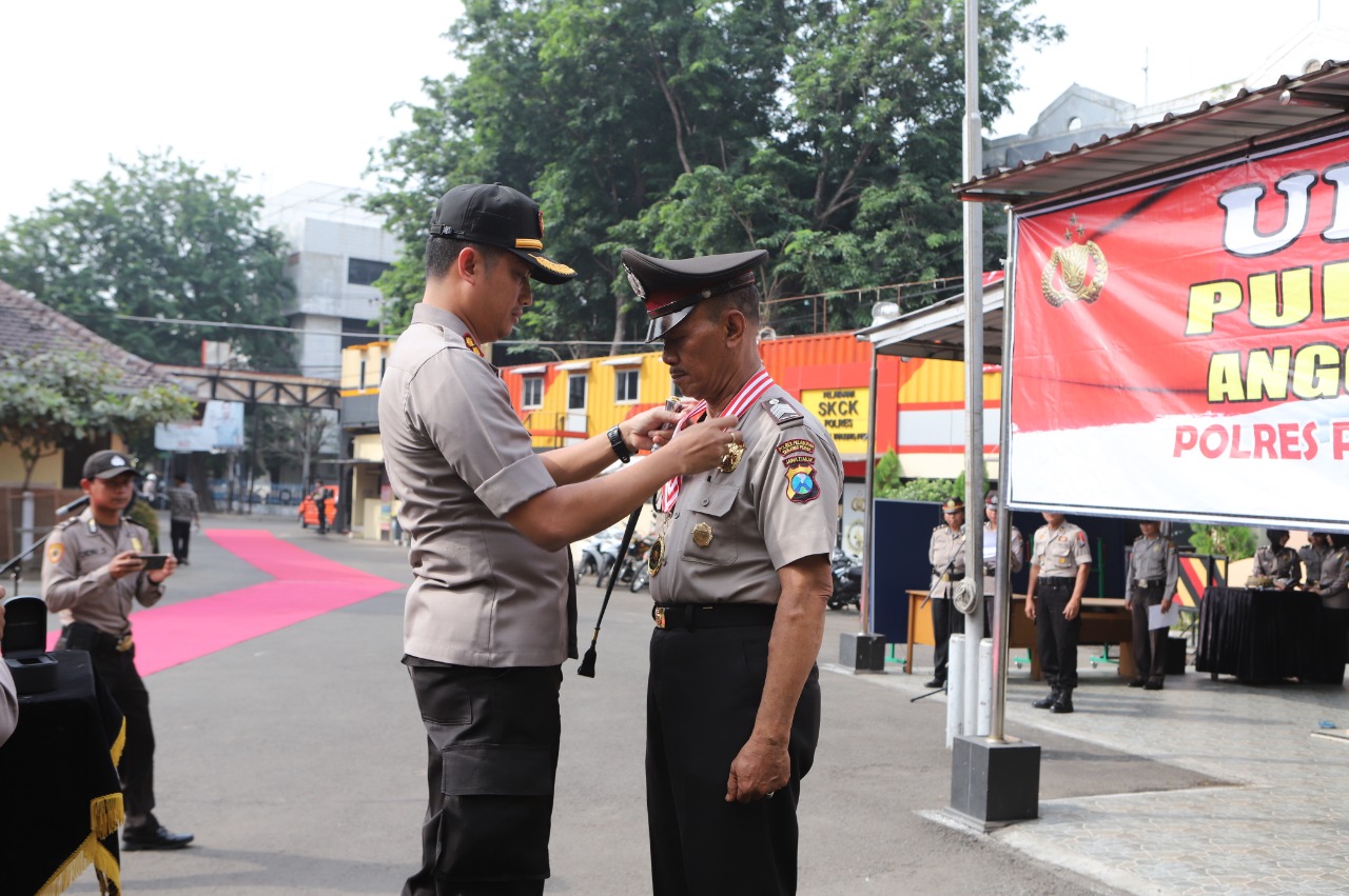 Seputarperak.com- Upacara purna tugas dan sekaligus pelepasan anggota pensiun digelar oleh Polres Pelabuhan Tanjung Perak, Sabtu pagi, 8 Desember 2018 di lapangan apel.