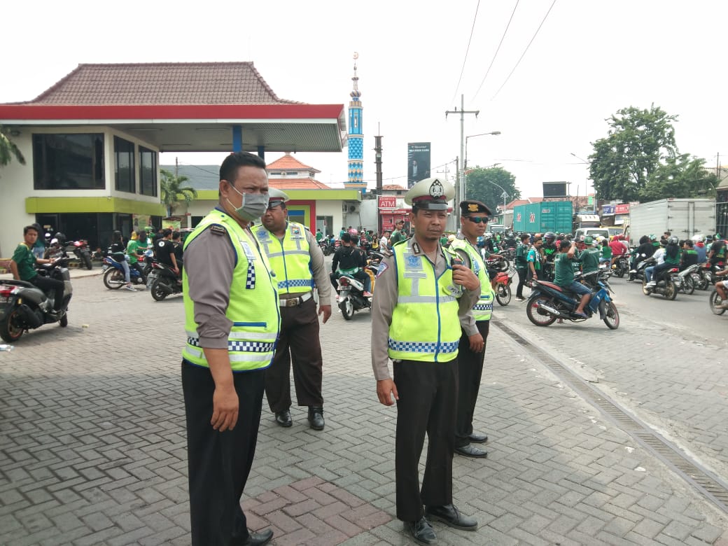 Seputarperak.com- Pengamanan jalur lintasan supporter Bonek dilaksanakan personil Polsek Krembangan, Polres Pelabuhan Tanjung Perak di SPBU depan hotel Antariksa, Sabtu siang, 8 Desember 2018.