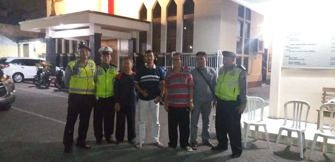 Saat itu pemantauan situasi keamanan dilakukan, sambil menyampaikan himbauan waspada tindak kriminalitas dan ancaman teror kepada petugas sekuriti gereja.