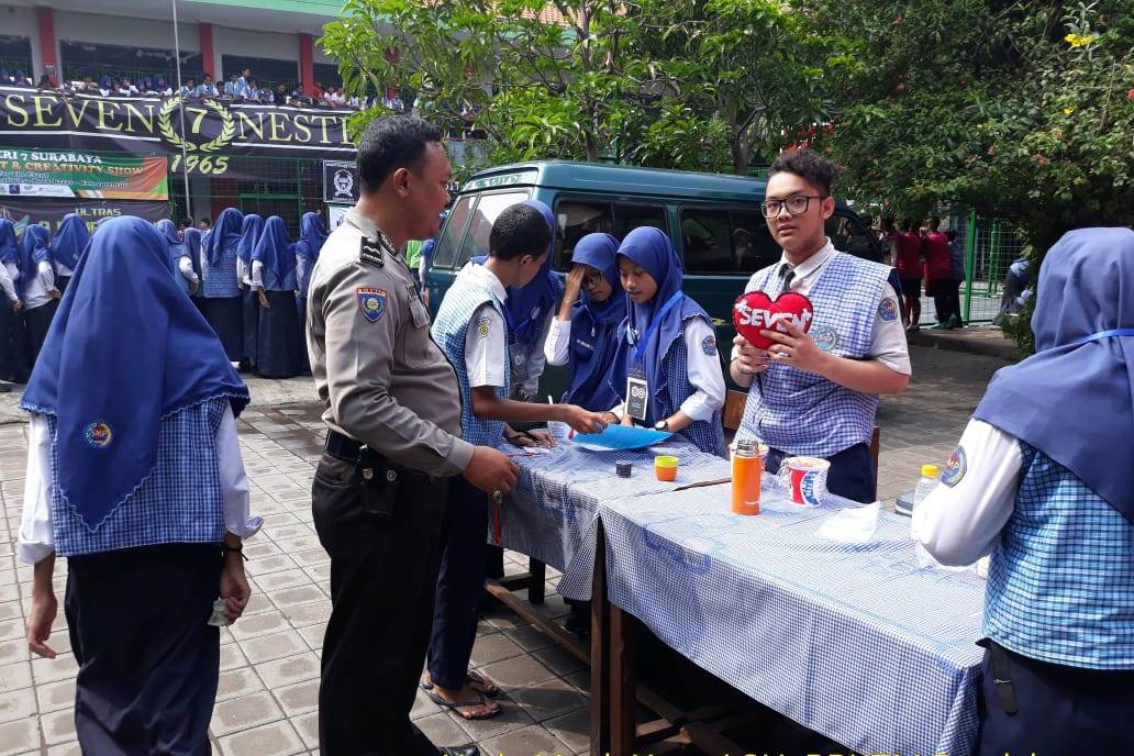 Seputarperak.com- Kunjungan dalam rangka melaksanakan Program Rabu Narsis dilakukan Aiptu Yanuri, Babinkamtibmas Perak Barat, Polsek Krembangan, Polres Pelabuhan Tanjung Perak di SMPN 7, Jalan Tanjung Sadari, Rabu pagi, 12 Desember 2018.