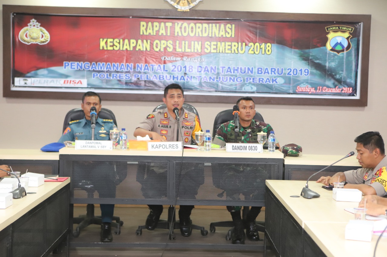 Seputarperak.com- Rapat koordinasi (Rakor) kesiapan Operasi Lilin Semeru 2018 digelar Polres Pelabuhan Tanjung Perak bersama instansi samping di Ruang Rupatama Sanika Satyawada, Kamis siang, 13 Desember 2018, yang dimulai pada pukul 13.25.