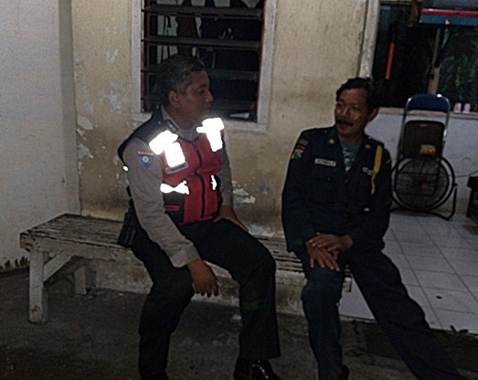 Dalam kegiatan ini Aiptu Heru Winarto menemui petugas keamanan gereja, Bapak Jermias, untuk menyampaikan pesan-pesan kamtibmas.