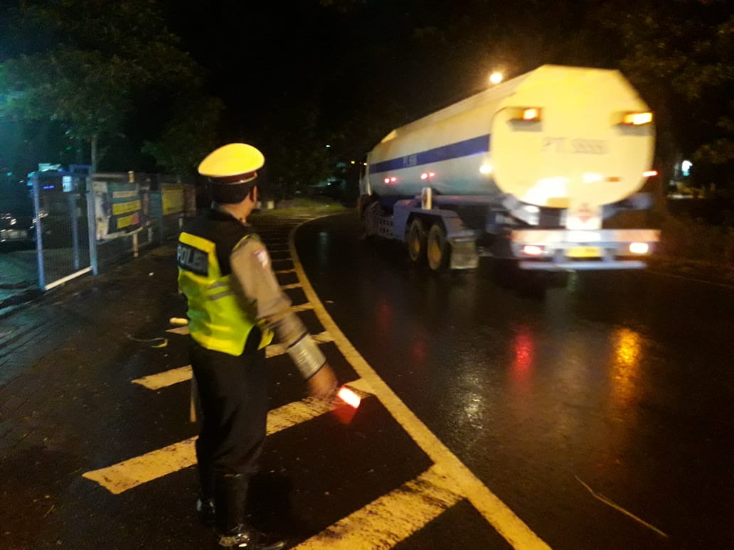 Seputarperak.com- Ditengah cuaca gerimis, personil Satlantas Polres Pelabuhan Tanjung Perak, melaksanakan pengaturan lalu lintas di seputaran akses tol Jalan M Nasir, Sabtu malam, 15 Desember 2018.