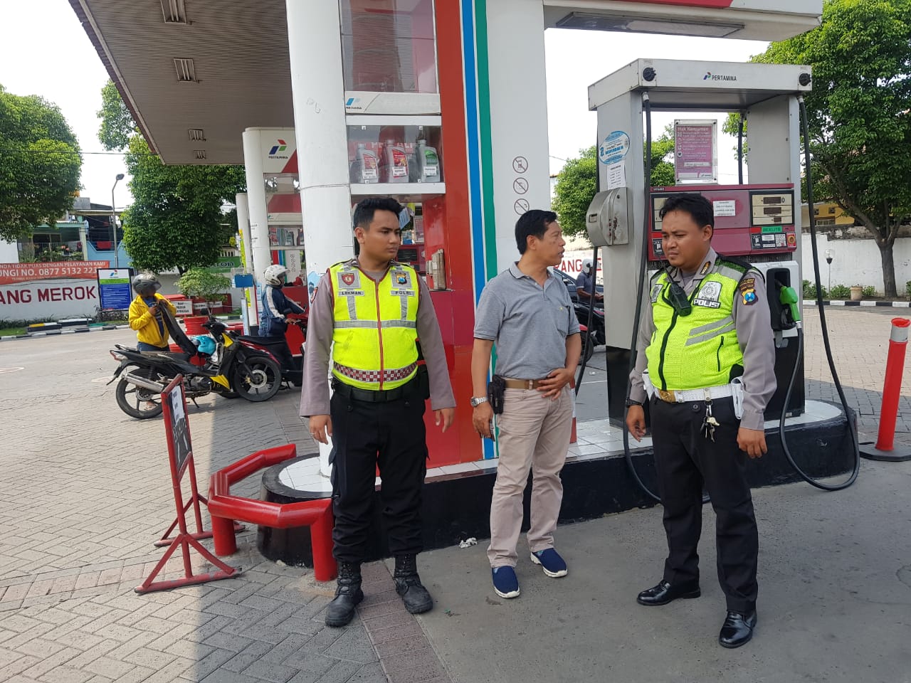 Seperti halnya yang dilakukan personil Unit Lantas dan Unit Sabhara Polsek Semampir di SPBU Jalan Sidotopo dan SPBU Jalan Dana Karya, Selasa, 18 Desember 2018.