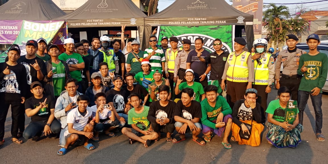 Aksi ini berlangsung tertib dan lancar di bawah pengamanan personil Satuan Lalu Lintas (Satlantas) Polres Pelabuhan Tanjung Perak.