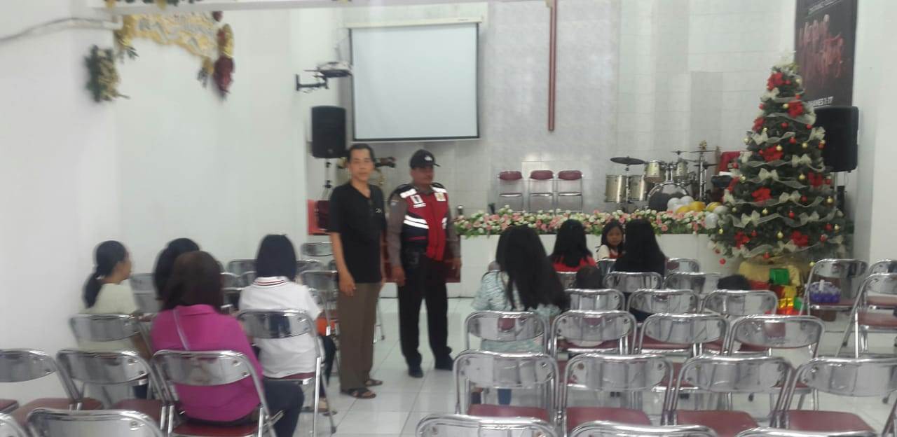 Seputarperak.com- Pengamanan kebaktian Natal dilaksanakan Aiptu M Yasin, Babinkamtibmas Krembangan Utara, Polsek Pabean Cantikan, Polres Pelabuhan Tanjung Perak di Gereja Pantekosta Jalan Layar, Minggu sore, 23 Desember 2018.