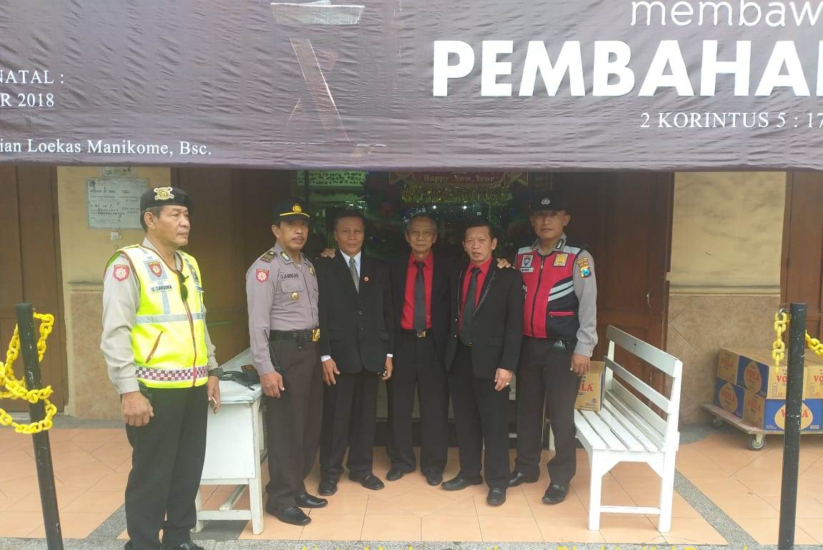 Seputarperak.com- Pengamanan kebaktian Natal dilaksanakan Polsek Pabean Cantikan di Gereja GPPS Jalan Karet, Selasa pagi, 25 Desember 2018.