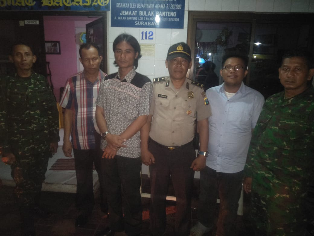 Seputarperak.com- Pengamanan kebaktian Natal masih terus dilakukan Polsek Kenjeran, Polres Pelabuhan Tanjung Perak, Selasa malam, 25 Desember 2018.