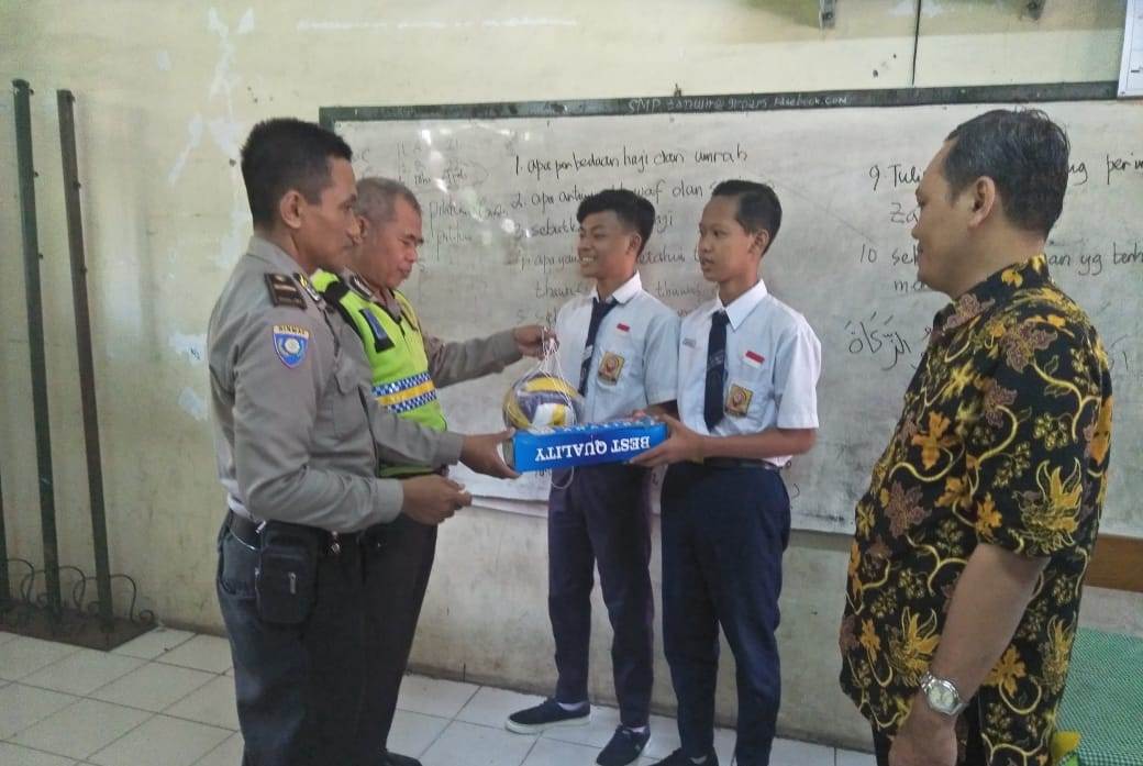 Kunjungan ini ditujukan untuk memberikan bantuan sebuah bola voli kepada perwakilan murid.