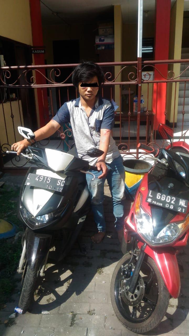 Pria asal Madura yang sehari-hari indekos di Jalan Bulak Banteng Gg. Kenanga, Kecamatan Kenjeran, Surabaya ini terpaksa merasakan pengabnya tahanan Polsek Kenjeran, Polsek Pelabuhan Tanjung Perak, karena aksi kejahatannya terbongkar.