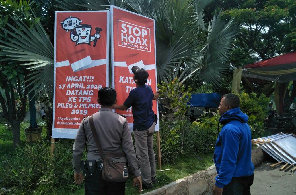 Saat itu pemasangan banner himbauan anti hoax dan himbauan menggunakan hak pilih dilakukan Aiptu Dhanu di seputaran Kenpark dan pos pantau Polsek Kenjeran.