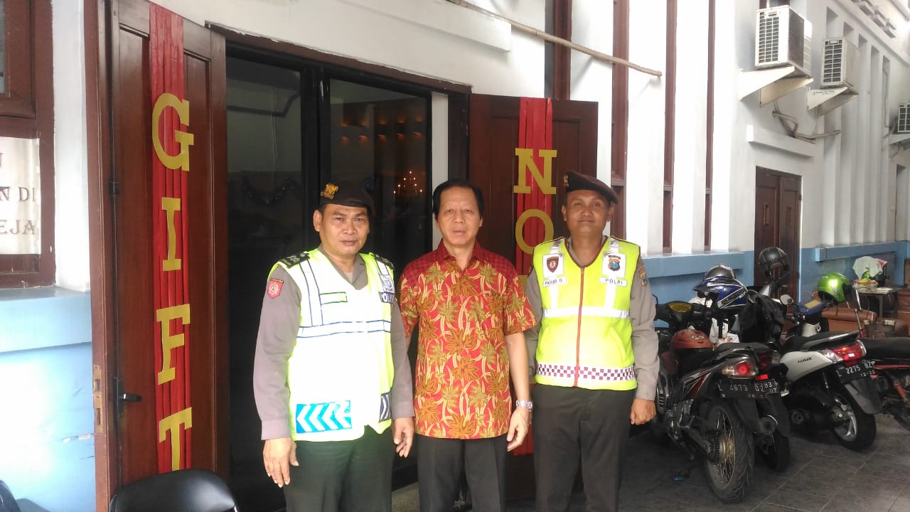 Untuk pengamanan kebaktian ini, Polsek Pabean Cantikan menerjunkan 3 personil, di bawah kendali Ipda Moch Arifin.