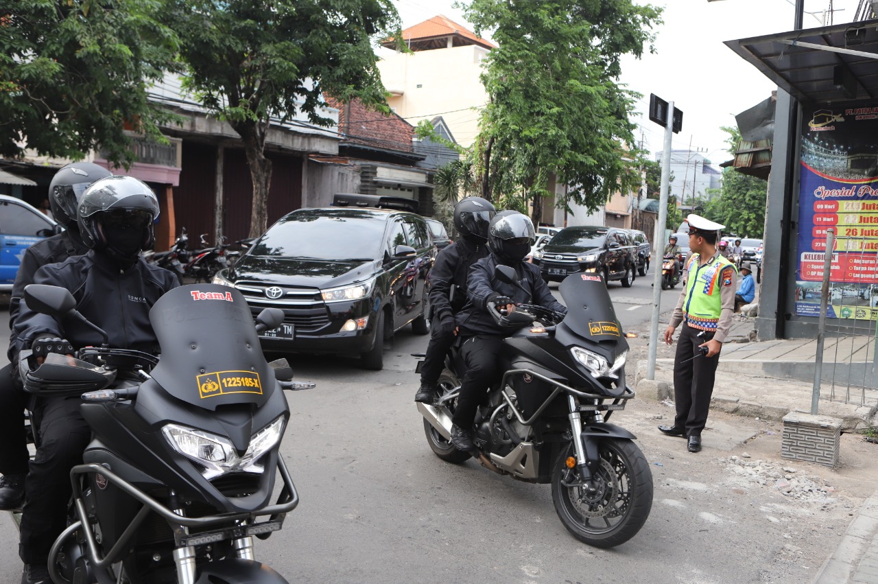 Rombongan Cawapres Sandiaga Uno juga mendapatkan pengawalan dari personil Polda Jatim.