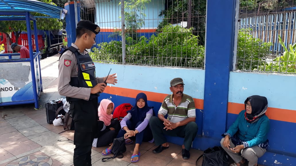 Seputarperak.com- Himbauan disampaikan Satsabhara Polres Pelabuhan Tanjung Perak kepada calon penumpang kapal tujuan Banjarmasin di Pelabuhan Jamrud Selatan, Selasa sore, 1 Januari 2018.
