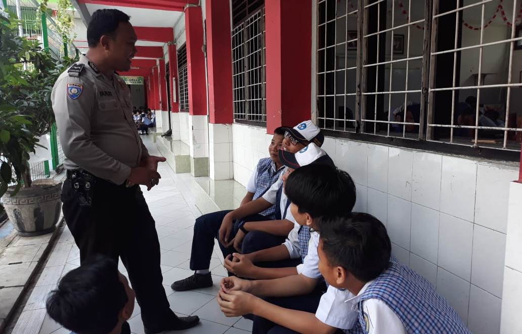 Dalam kunjungannya, Aiptu Yanuri disambut beberapa siswa SMPN 7 yang saat itu tengah beristirahat.