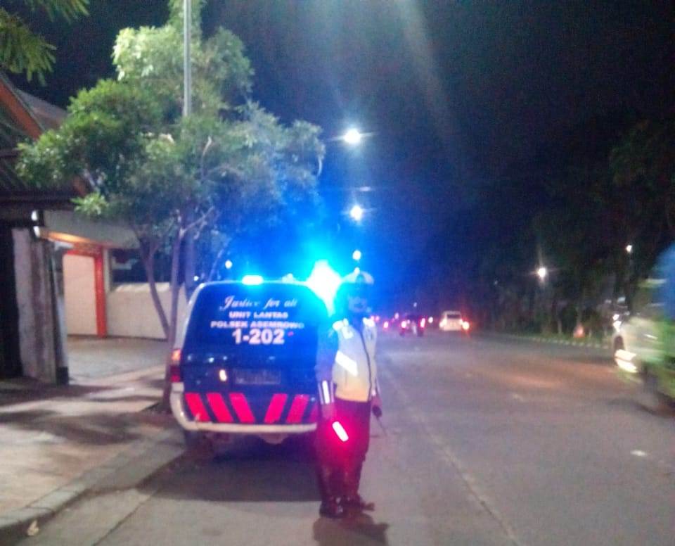 Patroli dilakukan personil Unit Lantas hingga menjelang subuh di Hari Minggu, 6 Januari 2019.