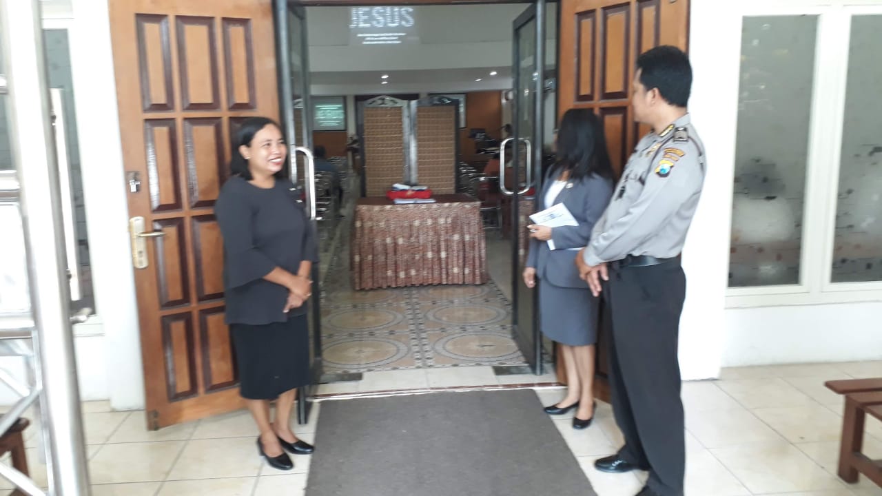 Seputarperak.com- Pengamanan juga dilakukan Polsek Krembangan, Polres Pelabuhan Tanjung Perak di Gereja Injil Sangihe Talaud di Jalan Ikan Gurami 3, Minggu pagi, 6 Januari 2019.
