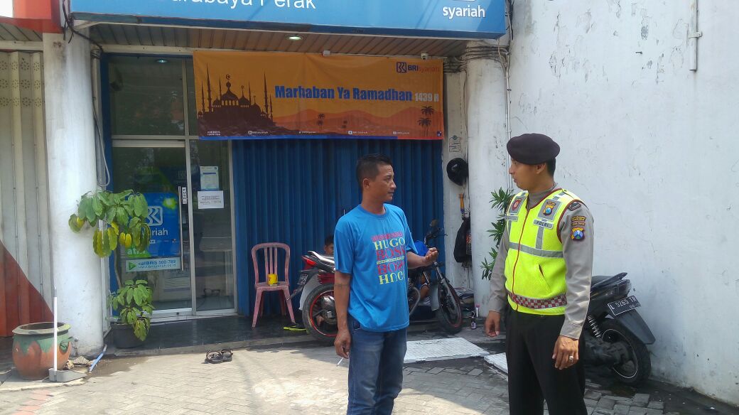 Saat itu personil Satsabhara melakukan patroli dialogis dengan petugas sekuriti bank Syariah di Jalan Perak Barat.
