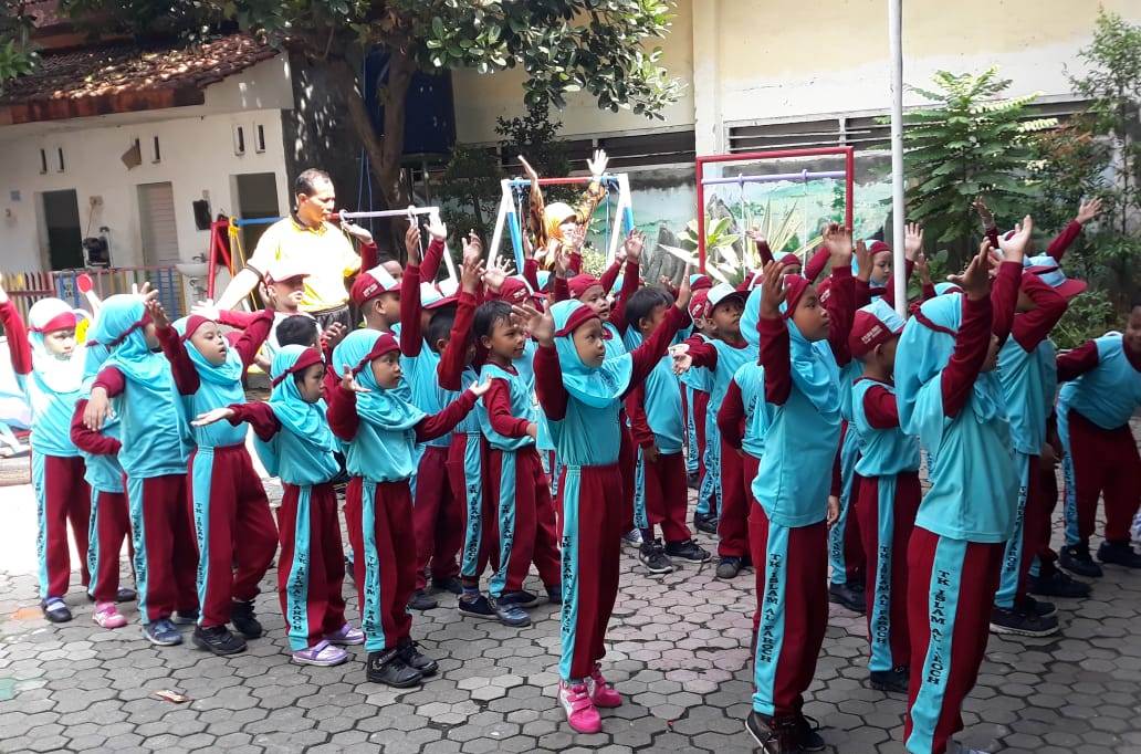 Seputarperak.com- Program Sabtu Osis yang dilaksanakan Aiptu Supriadi, Babinkamtibmas Bulak, Polsek Kenjeran, Polres Pelabuhan Tanjung Perak diisi dengan kegiatan olahraga bersama murid=murid TK Al Faroch di Kelurahan Bulak, Sabtu pagi, 12 Januari 2019.