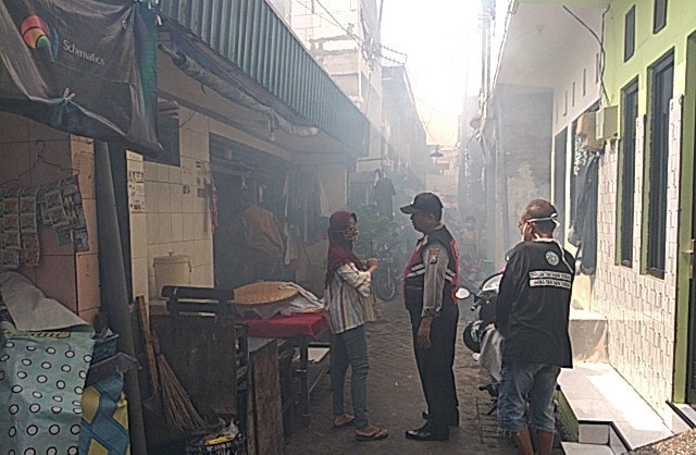 Seputarperak.com- Kegiatan pengasapan atau fogging dilakukan Aiptu Heru Winarto, Babinkamtibmas Perak Utara, Polsek Pabean Cantikan, Polres Pelabuhan Tanjung Perak di RT 01 dan RT 02/ RW 01, Sabtu 12 Januari 2019.