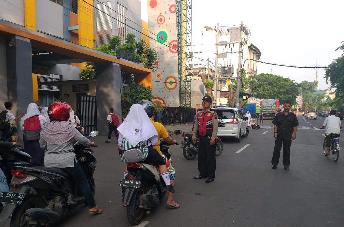 Seputarperak.com- Polsek Pabean Cantikan, Polres Pelabuhan Tanjung Perak melaksanakan pengaturan pagi di Jalan Bunguran, depan SMPN 8, Senin pagi, 14 Januari 2019.