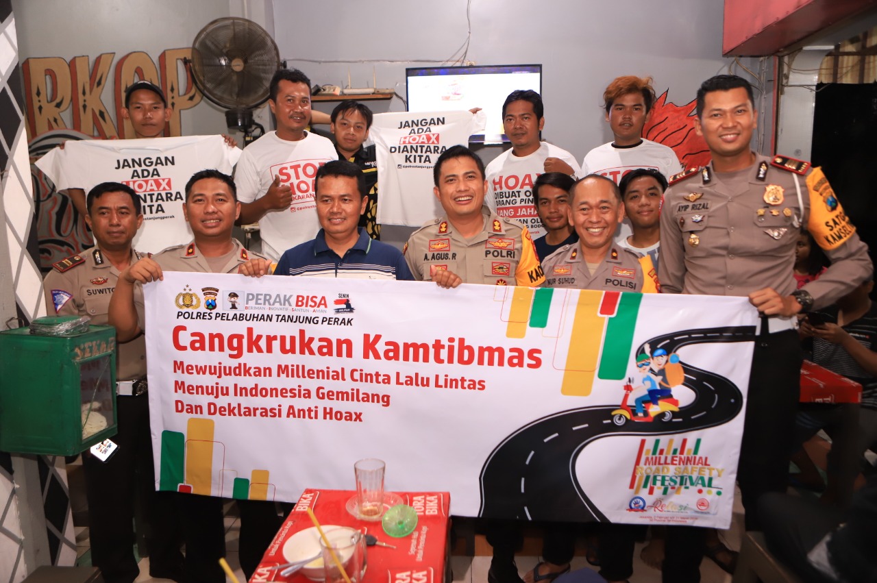Selain menyosialisasikan tertib berlalu lintas dan keselamatan dalam berkendara, Kapolres juga mengajak para pengunjung warung untuk bersama-sama mendeklarasikan anti berita bohong alias hoax.