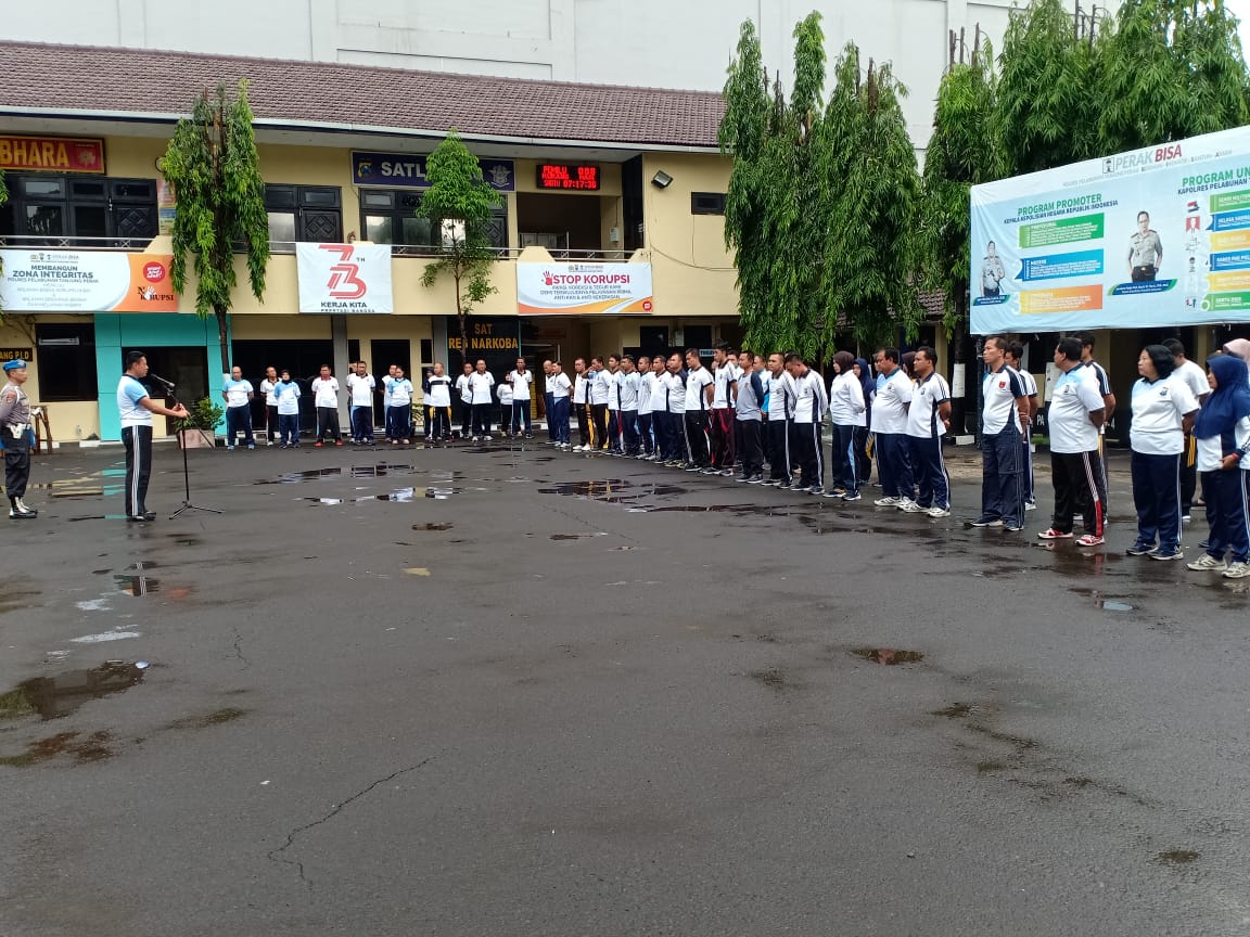 Kegiatan olahraga ini diikuti seluruh personil dan para PJU dengan penuh semangat. Mereka melaksanakan senam pagi yang juga dipimpin oleh AKP Heru Purwandi.