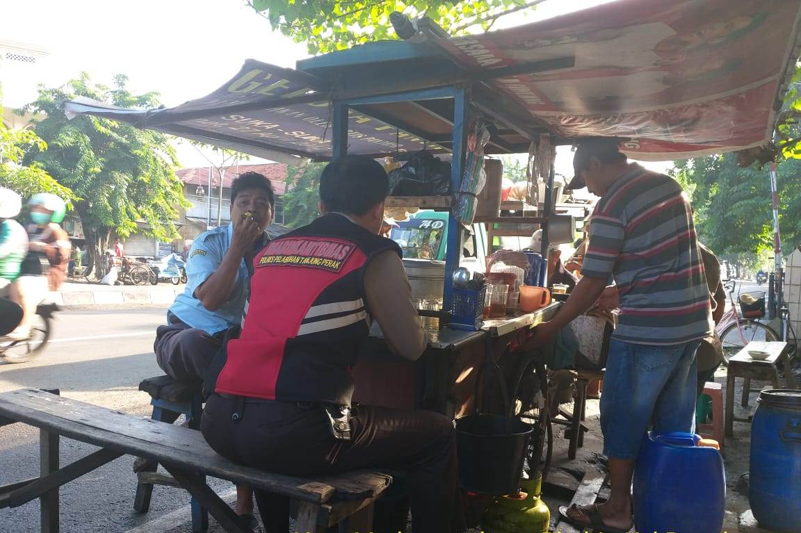 Seputarperak.com- Himbauan waspada demam berdarah disampaikan Aiptu Made Suarthana, Babinkamtibmas Bongkaran, Polsek Pabean Cantikan, Polres Pelabuhan Tanjung Perak saat mengunjungi warung kopi di Jalan Stasiun Kota, Senin pagi, 21 Januari 2019.