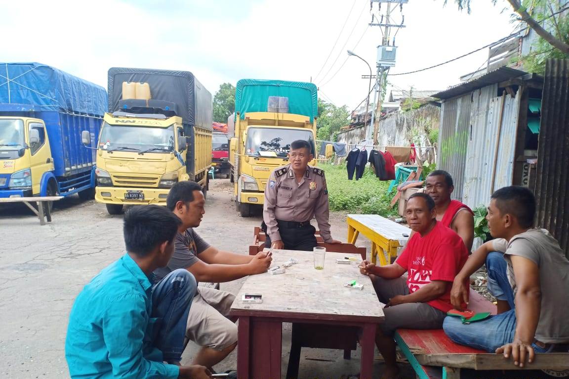 Seputarperak.com- Himbauan tertib berlalu lintas disampaikan Aiptu Muhadi Purnomo, Babinkamtibmas Sidotopo, Polsek Semampir, Polres Pelabuhan Tanjung Perak kepada para sopir truk yang mangkal di Jalan Sidotopo, Selasa, 22 Januari 2019.