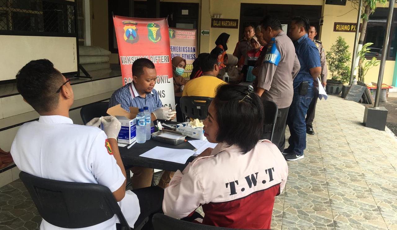 Acara dimulai pendataan, dilanjutkan dengan pemberian vaksin Difteri dan pemeriksaan gigi.