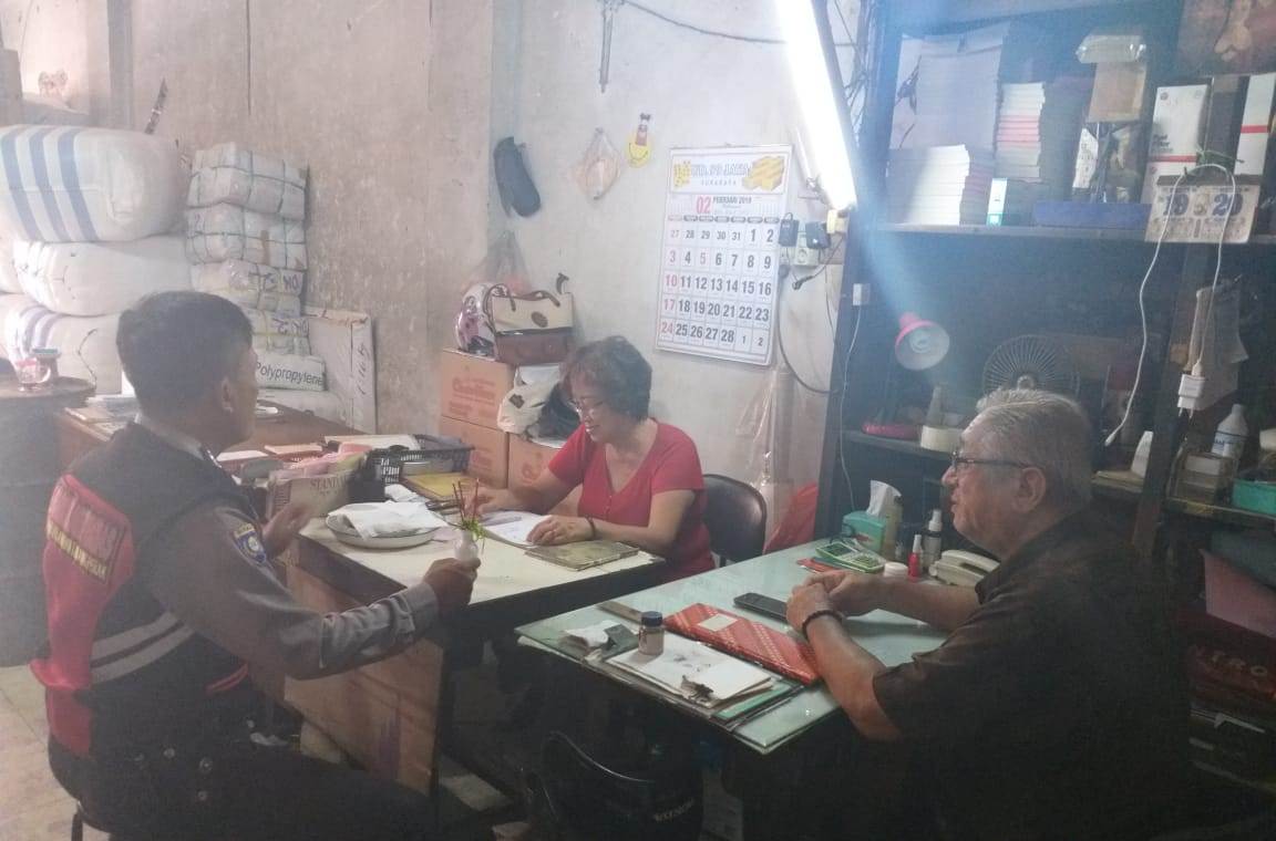 Seputarperak.com- Himbauan cegah kemacetan disampaikan Aiptu Made Suarthana, Babinkamtibmas Bongkaran, Polsek Pabean Cantikan, Polres Pelabuhan Tanjung Perak kepada Bapak Ko Lan, bos ekspedisi di Jalan Bongkaran, Senin siang, 11 Pebruari 2019.