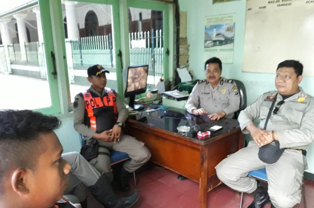 Seputarperak.com- Koordinasi keamanan dilakukan Aiptu Achmad Faruk, Babinkamtibmas Ampel, Polsek Semampir, Polres Pelabuhan Tanjung Perak bersama petugas Satpol PP dan pengelola wisata Ampel, Senin sore, 11 Pebruari 2019.