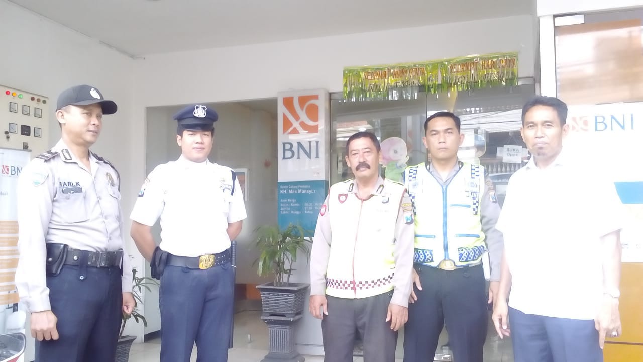Himbauan kamtibmas ini dilaksanakan kepada petugas keamanan Bank BNI Jalan KH Mas Mansyur, Kecamatan Semampir.