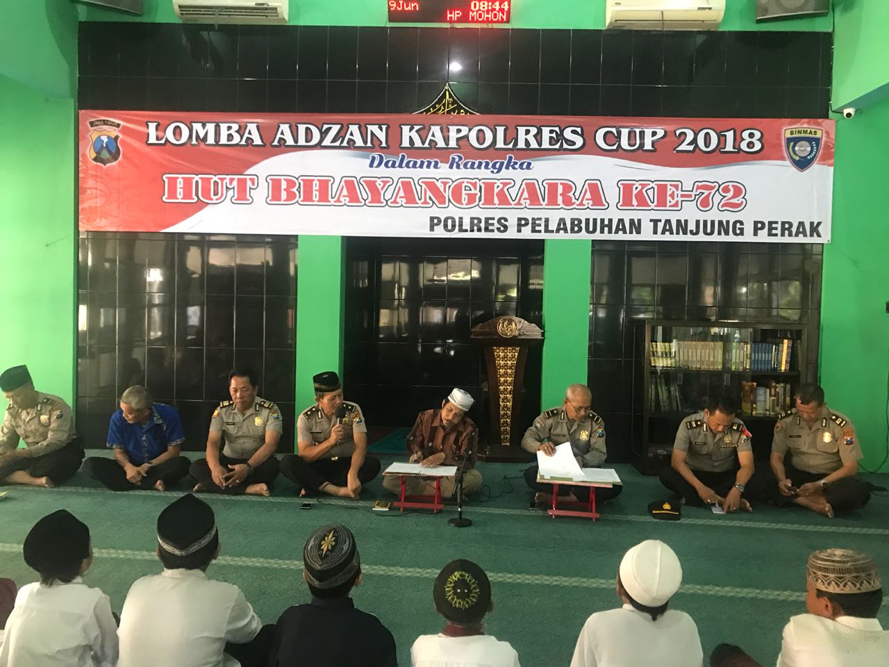 Seputarperak.com- Dalam memperingati HUT Bhayangkara ke 72, Polres Pelabuhan Tanjung Perak mengadakan lomba Adzan piala Kapolres Cup 2018 di Masjid Al Hidayah di lingkungan Mapolres.