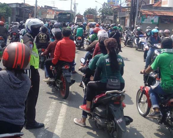 Seputarperak.com- Pengaturan lalu lintas sore dilaksanakan anggota Satlantas Polres Pelabuhan Tanjung Perak di seputaran Jembatan Branjangan, Sabtu, 16 Pebruari 2019.