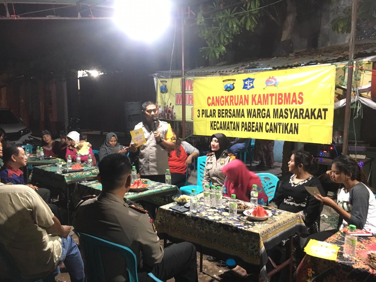 Seputarperak.com- Acara cangkrukan kamtibmas digelar Polsek Pabean Cantikan, Polres Pelabuhan Tanjung Perak, Senin malam, 25 Pebruari 2019, di Jalan Kalimas Timur, Kelurahan Nyamplungan.