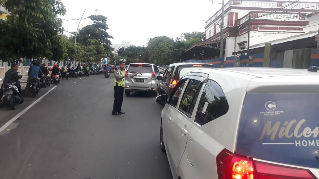 Salah satunya seperti yang dilaksanakan personil Unit Lantas Polsek Pabean Cantikan di seputaran Jalan Stasiun Kota, depan Pasar Atom Mall, Sabtu, 2 Maret 2019.
