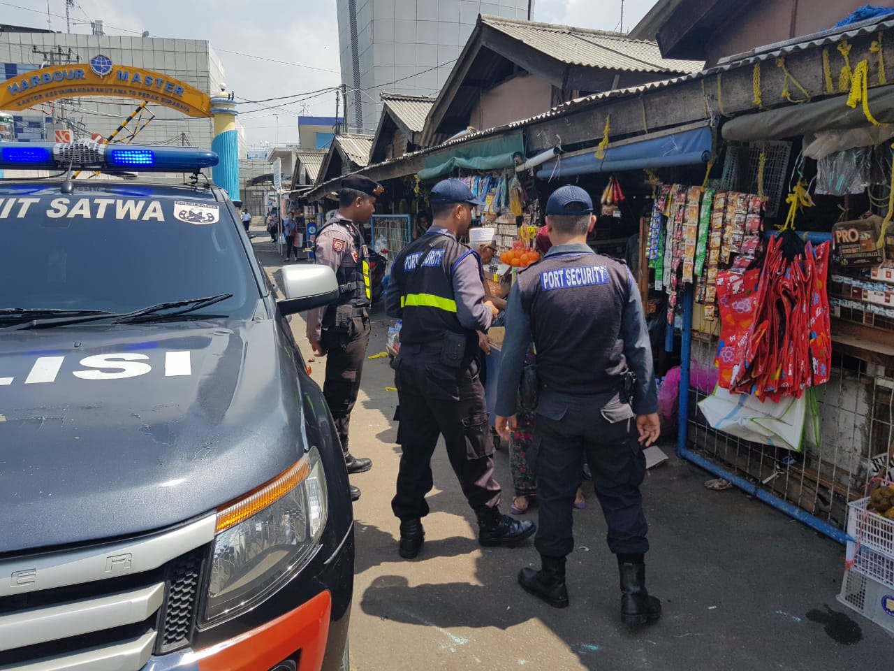 Dalam patroli ini selain melakukan pengawasan untuk mengantisipasi kendaraan yang pakir sembarangan dan perpotensi menyebabkan kemacetan, personil Satsabhara bersama sekuriti Pelindo juga menyampaikan pesan-pesan keamanan kepada para pedagang.