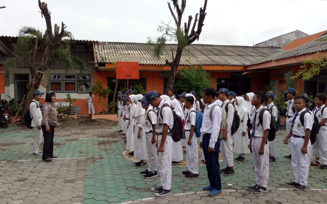 Seputarperak.com- Kunjungan dilakukan Iptu Rossa, Panit Binmas Polsek Krembangan, Polres Pelabuhan Tanjung Perak di SMP Bina Karya Jalan Dupak Bangunsari, Rabu pagi, 6 Maret 2019.