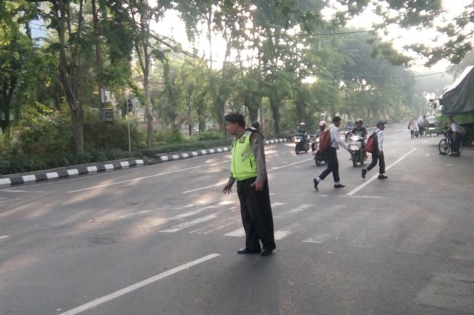 Saat itu sambil melakukan pengaturan lalu lintas, personil Polsek Pabean Cantikan juga membantu menyeberangkan warga, termasuk anak-anak sekolah yang ada di sekitar lokasi.