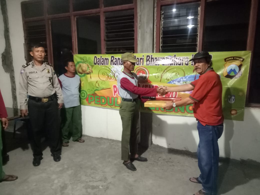 Seperti yang terlihat Senin, 11 Juni 2018, ketika Babinkamtibmas Kelurahan Asemrowo, Aiptu Didit menyampaikan bantuan berupa senter dan jam dinding ke sejumlah warga.