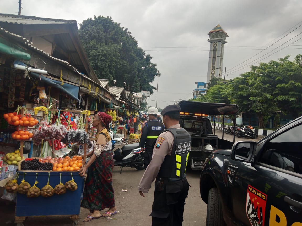 Saat itu personil Satsabhara juga menyampaikan himbauan keamanan kepada para pedagang.