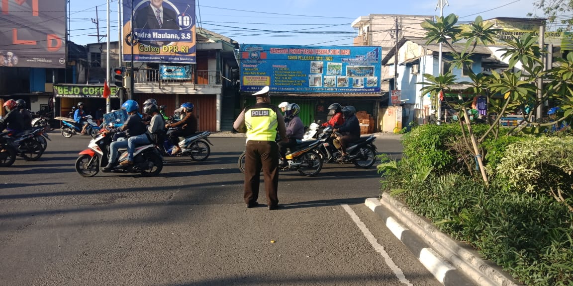 Seputarperak.com- Pengaturan lalu lintas sore dilaksanakan Polsek Krembangan, Polres Pelabuhan Tanjung Perak di perempatan Mbah Ratu, Jalan Dupak, Jumat, 8 Maret 2019.